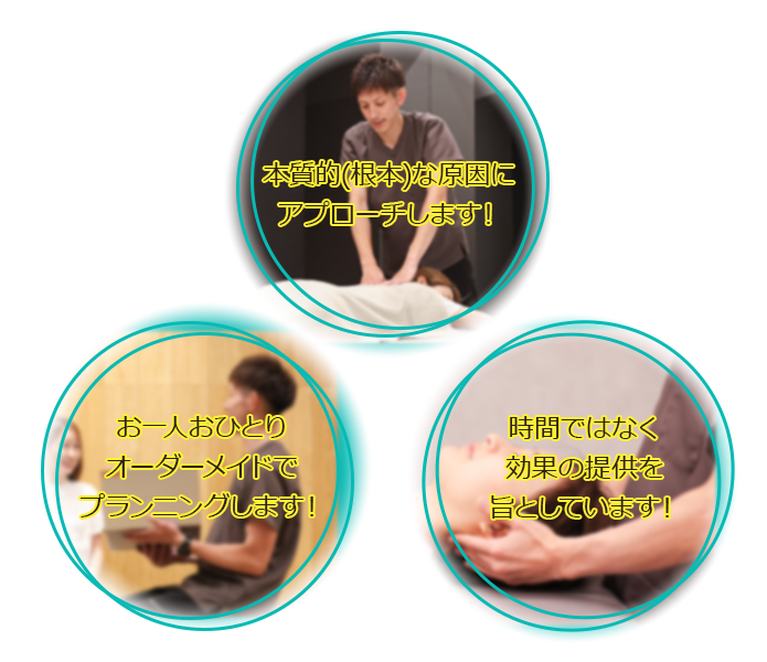 「本当に必要な正しいアプローチ・本物の施術」をテーマとして、医学的根拠に乏しい施術や治療的意義のない施術、整合性が伴わない施術はしません。